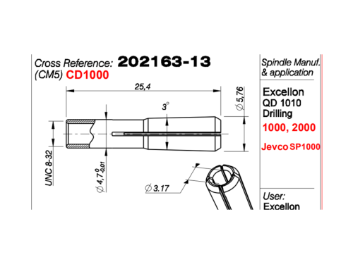 CD1000 collet for excellon QD1000/1010/2000 spindle Part Name Drilling Machine Spindle Collet Application Excellon Spindle QD1000/1010/2000 Holding Range