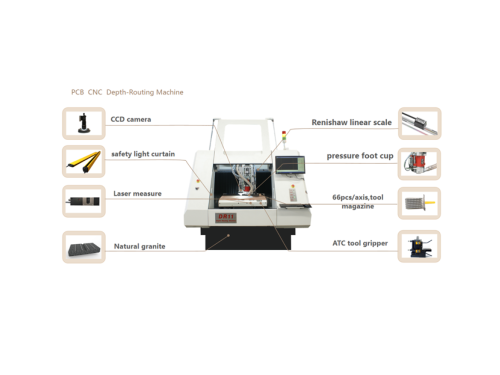 Depth Control 6 Spindles PCB Routing Machine with the new design of auto pinning function.